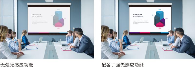 强光感应功能通过增强细节,提高了在明亮房间中投影图像的色彩感知度,尤其使暗部区域的细节得以清晰再现。投影机内置环境光线传感器可以实时监测房间亮度,并实时调节投影图像的亮度与色调,以适应周围照明条件。