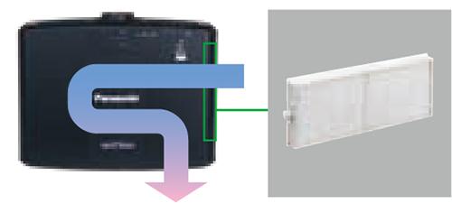 ECO 过滤网包含一个微型过滤网,可捕捉带静电效应的微小灰尘。 ECO过滤网与防尘外壳相结合,使投影机能够在多尘的环境中长期使用,减少停机时间。更换周期大约为 20,000 小时 *3 ,过滤网可水洗以及重复使用 *4 。