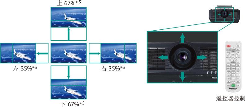 | 水平(光轴位于屏幕中心) | ±35% ( 电动 ) ( 标准镜头 ) | |