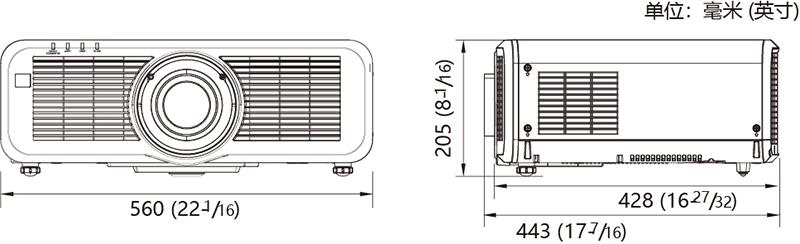 | 尺寸(宽x高x长) | PT-SMZ77C/SMW73C: 560 x 205*6 x 443 mm( 含标准镜头 ) PT-SMZ77CL/SMW73CL: 560 x 205*6 x 428 mm( 不含镜头 ) | |