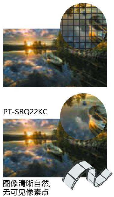 PT-SRQ22KC可投影出明亮的影片级 4K+(5,120 x 3,200)图像,无可见像素点,再现清晰自然的影像。采用既能保持高亮度,又能提高画质的四倍像素驱动,实现超高分辨率视觉体验,惊艳全场。