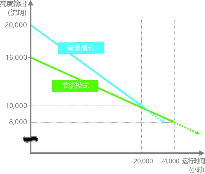 基于PT-SRQ22KC投影机的设计特点,可免维护运行20,000小时*4,即使在恶劣的操作环境下也无需更换过滤网或光源。在监控室、虚拟仿真或者光线较暗的博物馆、天文馆中,往往不需要将亮度设定为最大值,此时可以设定为节能模式,运行时间可延长至24,000小时*4。在该模式下,亮度衰减平缓且能保持色彩一致性,可以长时间保持高画质并实现更低的总持有成本。