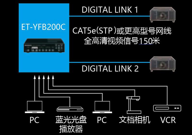 DIGITAL LINK 可通过一根CAT5e(STP)或更高型号网线,传输视频和控制信号。最长可传输全高清视频信号150米、4K信号50米*9。使用选配件高清数字传输盒,可使安装更为简便,同时降低使用成本。